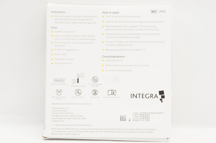 - Integra 31722 MEDIHONEY Adhesive WITH HCS Sheet, 2.8inch x 2.8inch - Box of 7