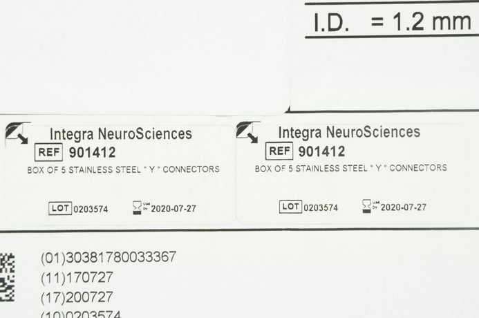 Integra NeuroSciences 901412 Stainless Steel "Y" Connectors O.D. 1.8mm x I.D. 1.2mm