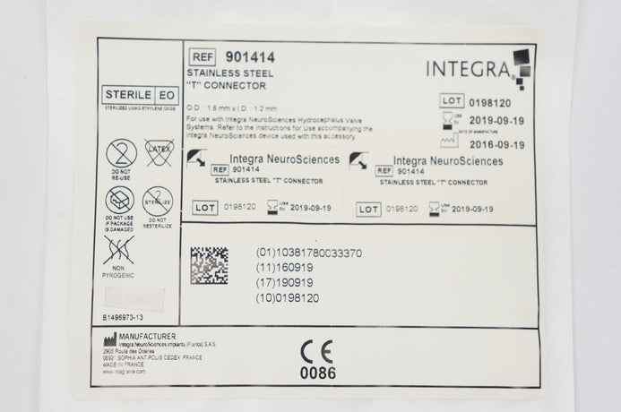 Integra 901414 Stainless Steel "T" Connector OD 1.8mm x ID 1.2mm