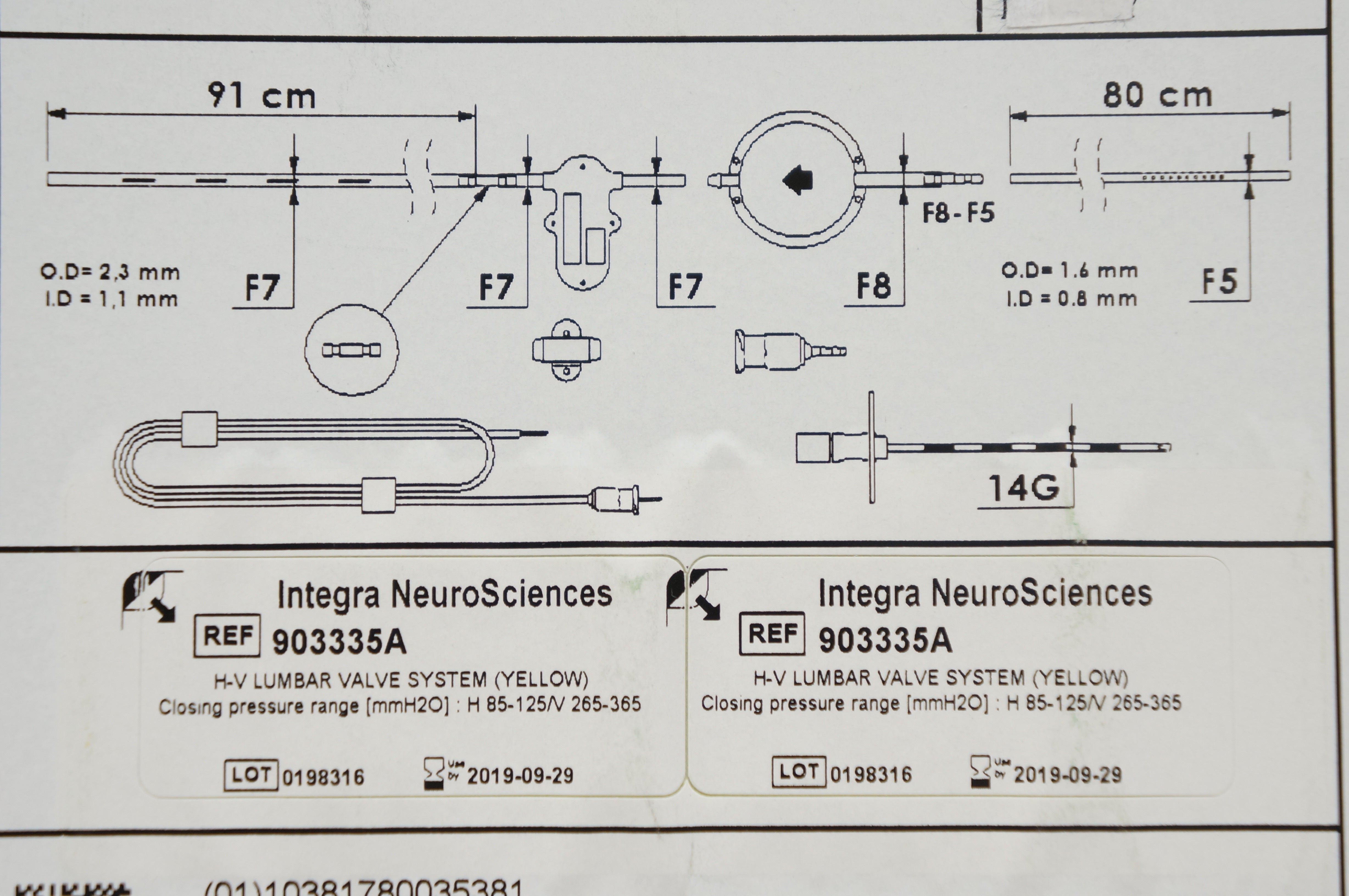 Integra 903335A H-V Lumbar Valve System Yellow, H 85-125mmH2O/V 265-365mmH2O (x)