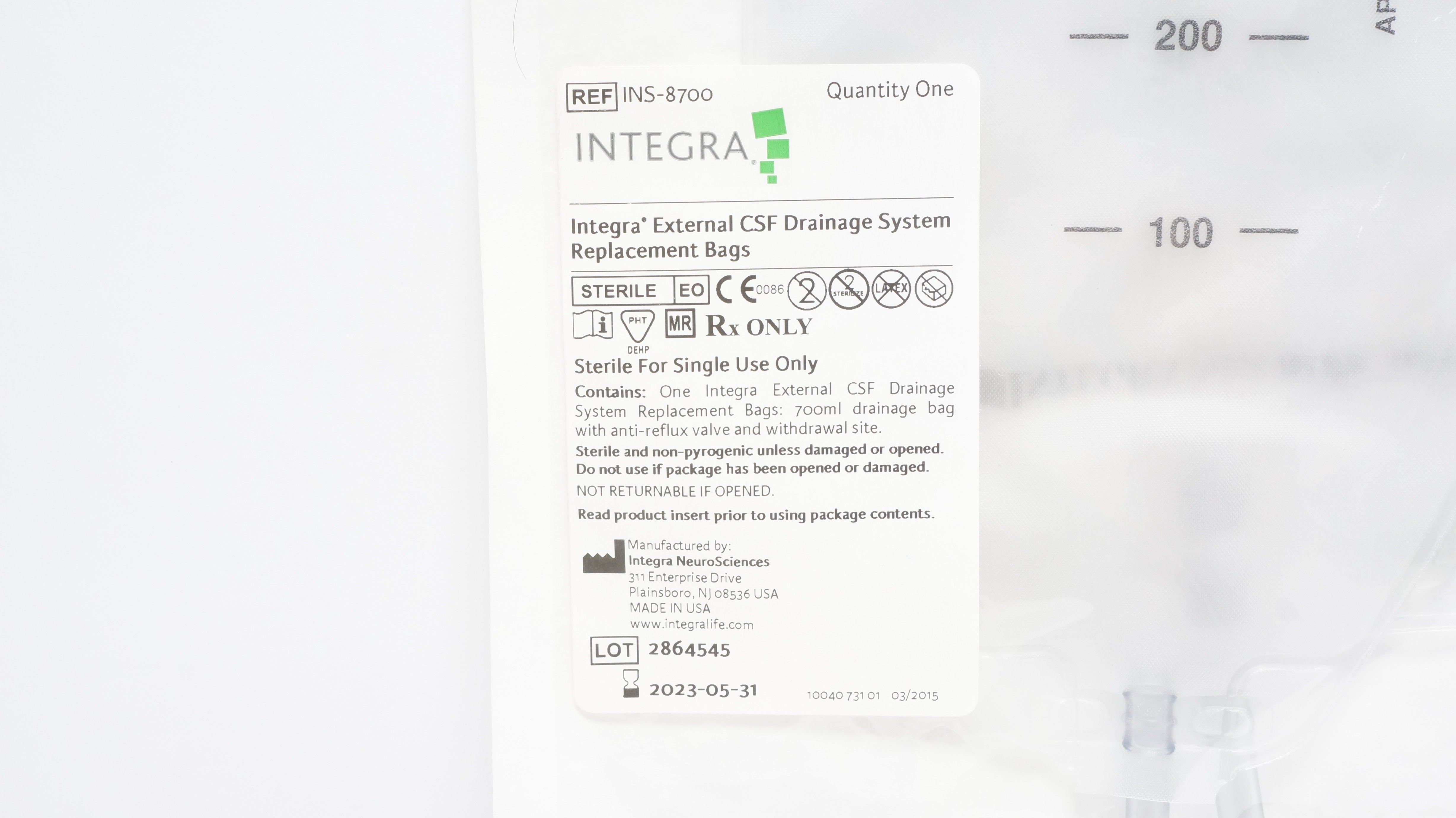 - Integra INS-8700 External CSF Drainage System Replacement Bags (x)