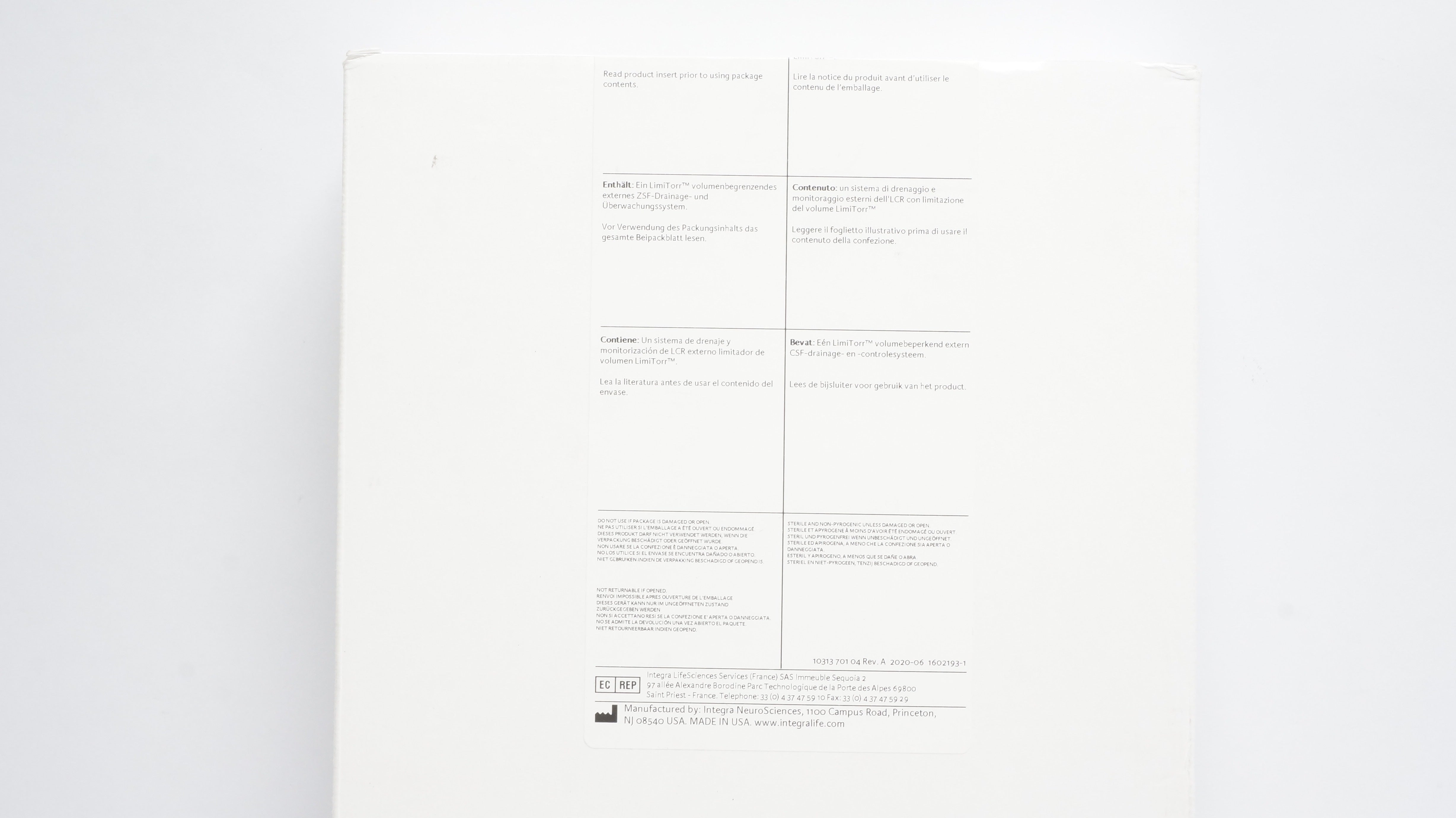 Integra INS9020 LimiTorr Volume Limiting Extrenal CSF Drainage&Monitoring Sys(x)