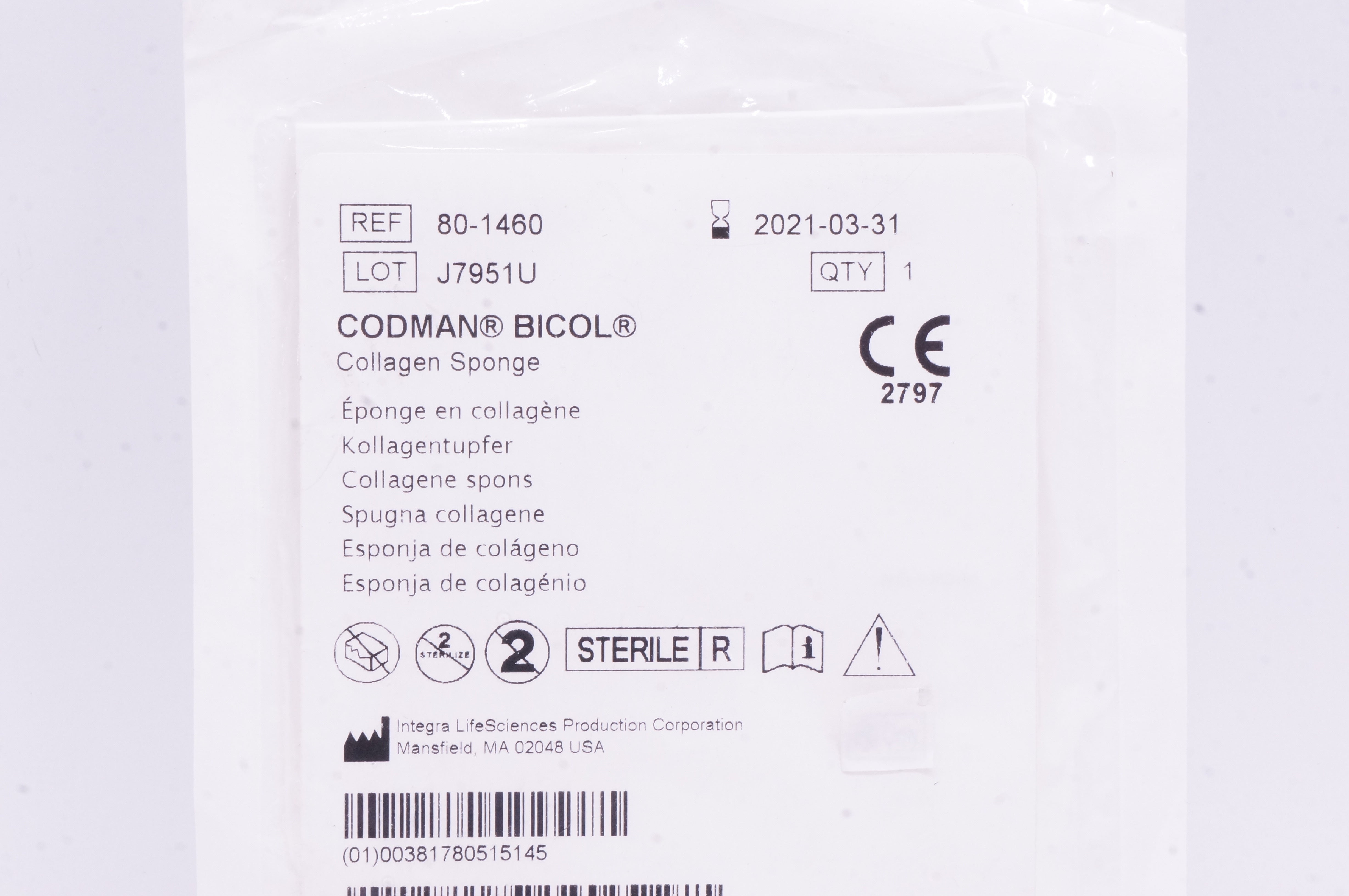 - Integra LifeSciences 80-1460 Codman Bicol Collagen Sponge, Sterile (x)