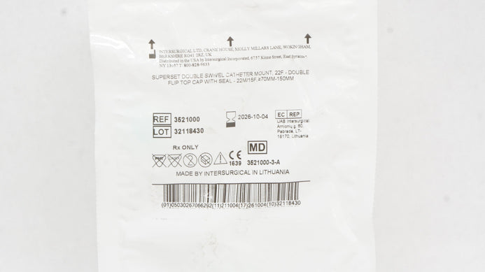 - Intersurgical 3521000 Superset Double Swivel Cath. Mount, 22F, Dbl.Flip Top Cap