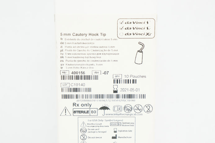 - Intuitive 400156 Da Vinci S/Si Cautery Hook Tip 5mm (x) - Box of 10