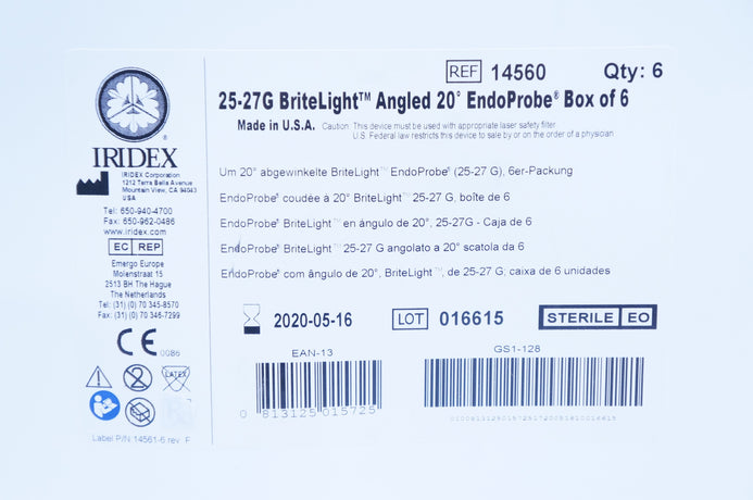 Iridex 14560 25-27G BriteLight Angled 20degree EndoProbe (x) - Box of 6