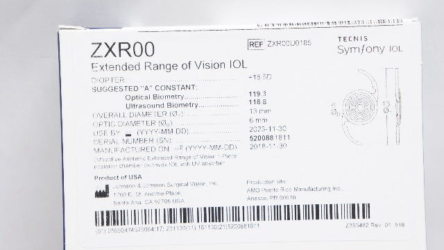 Johnson&Johnson ZXR00U0185 Tecnis ZXR00+18.5D Extended Range of Vision IOL (x)