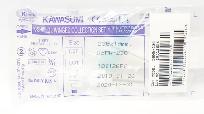 Kawasumi DBMA-23G K-Shield Winged Collection Set with Luer Adapter 23G x 19mm(x)