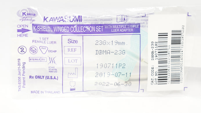 Kawasumi DBMA-23G K-Shield Winged Collection Set with Luer Adapter 23G x 19mm(x)