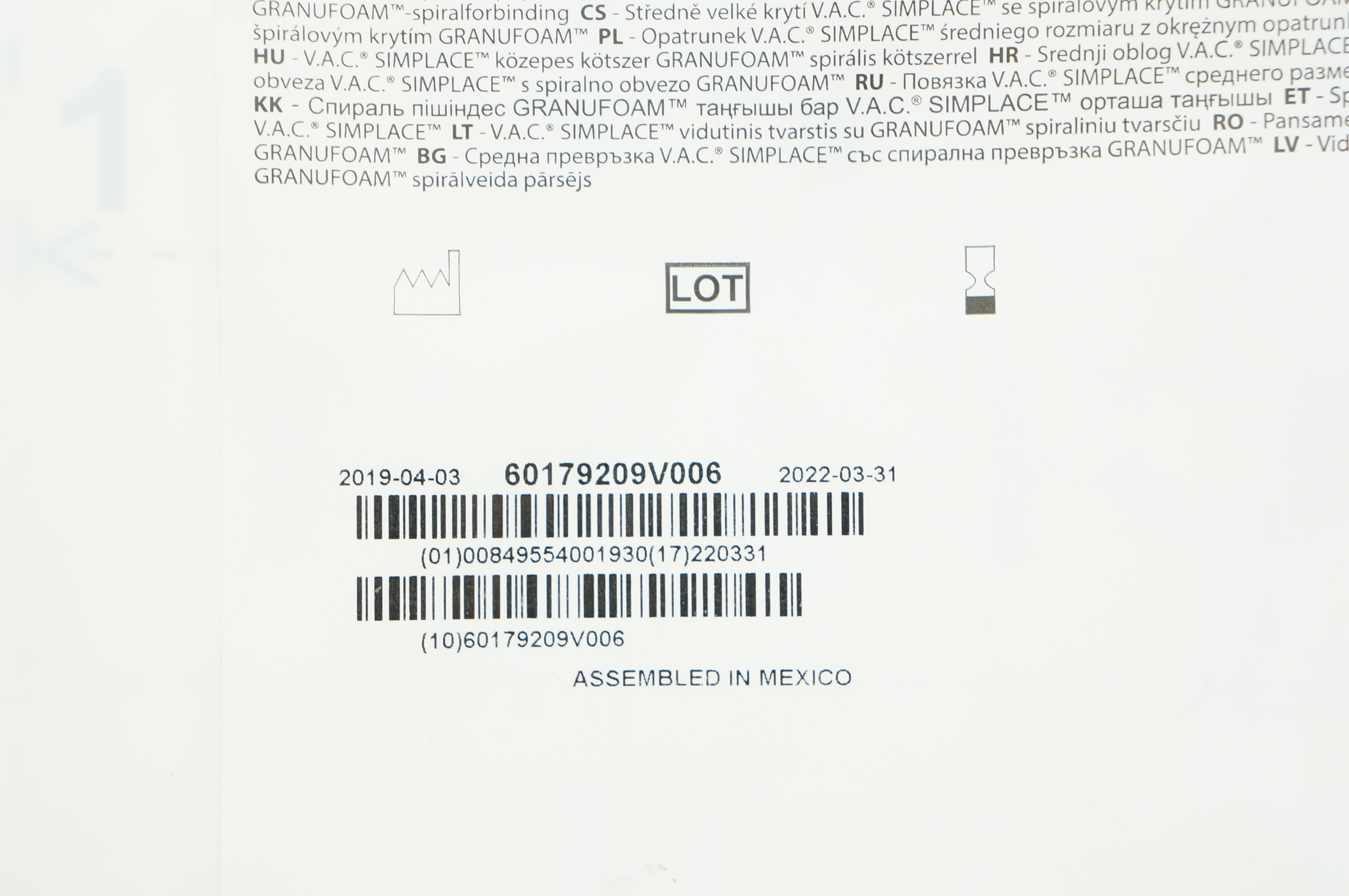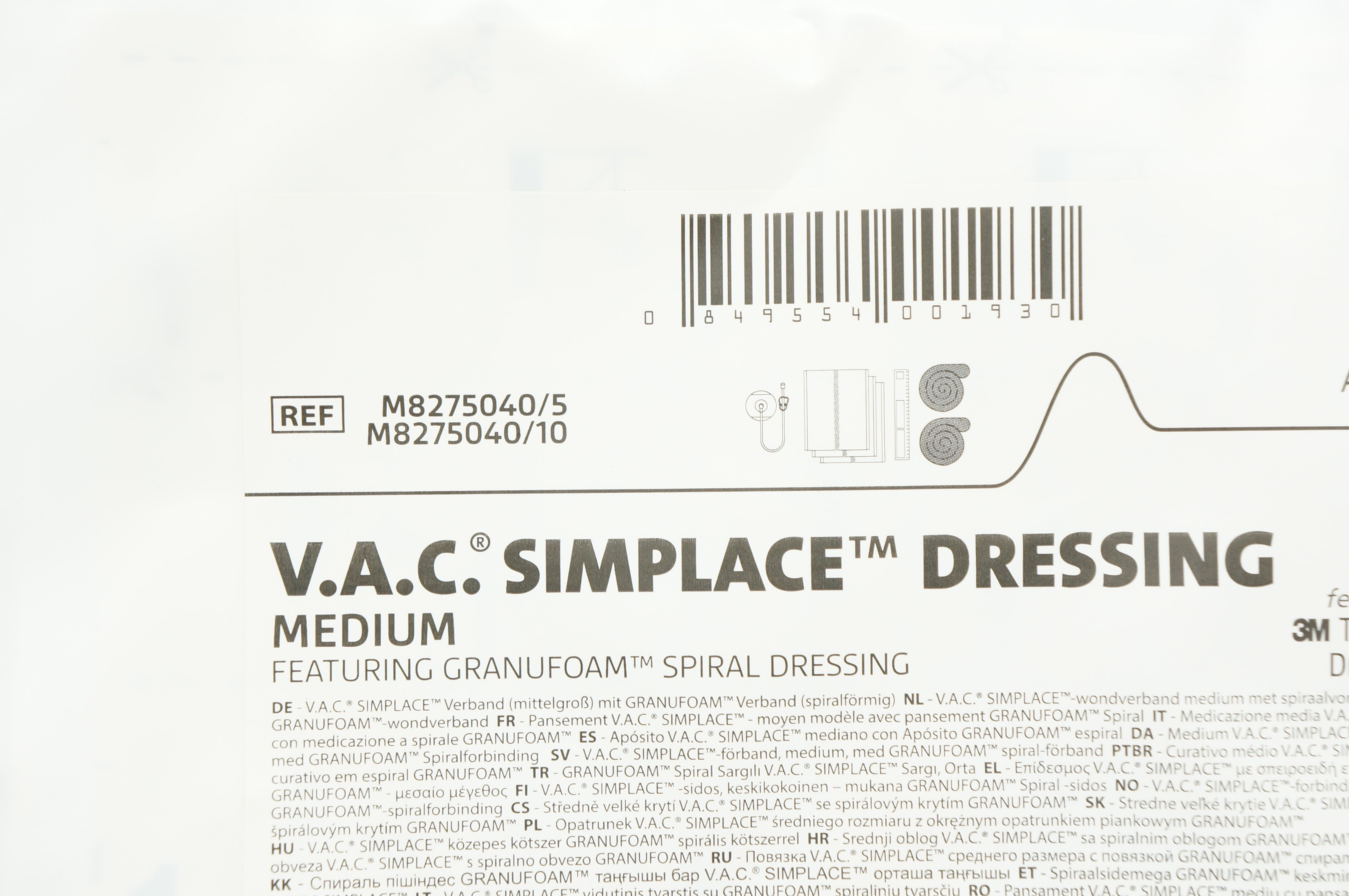 KCI  M8275040/5 V.A.C. Simplace Dressing Medium Featuring Granufoam Spiral Dressing