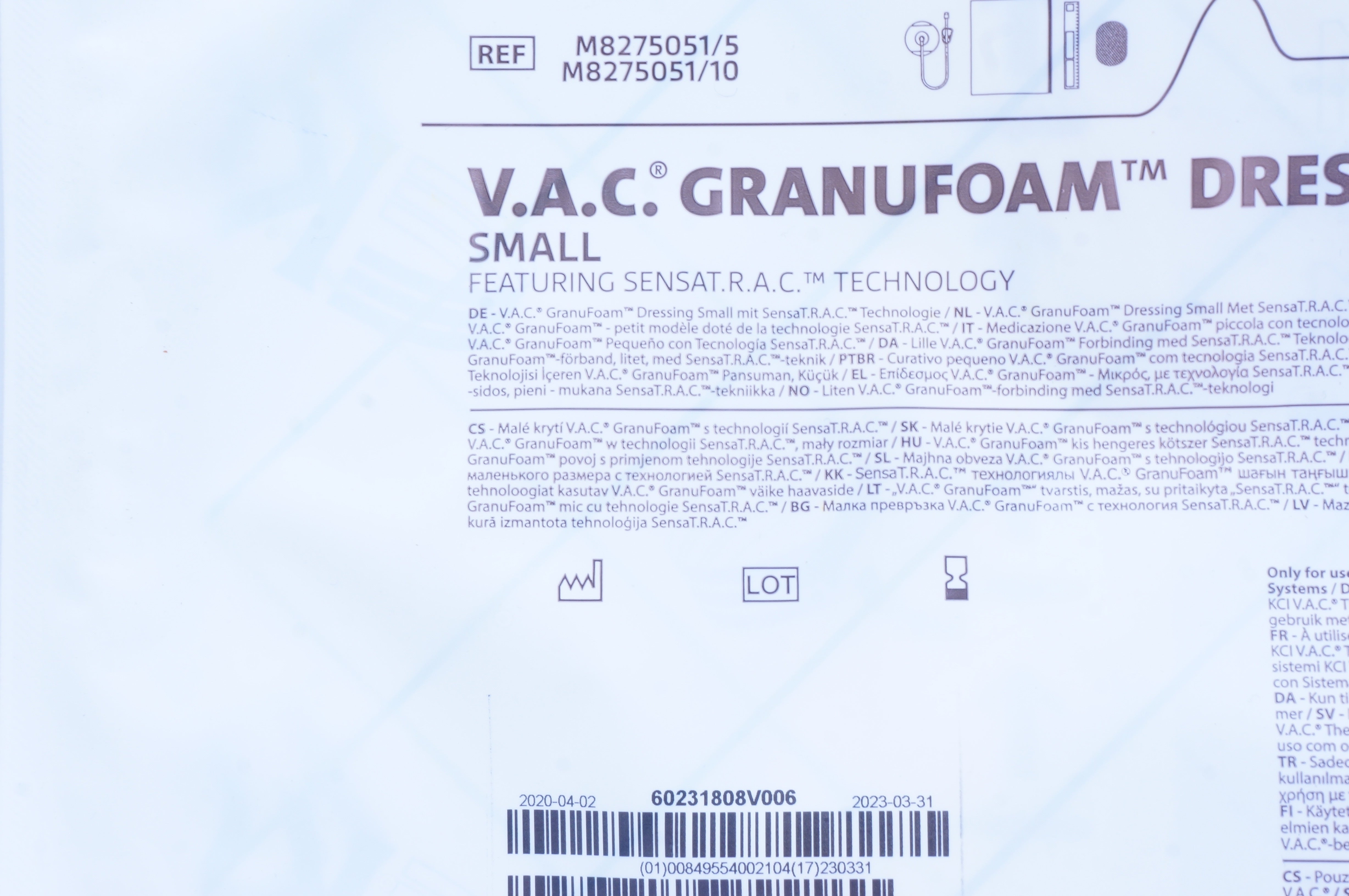 - KCI M8275051/5 V.A.C. Granufoam Dressing (S) Featuring SENSAT.R.A.C. Technology