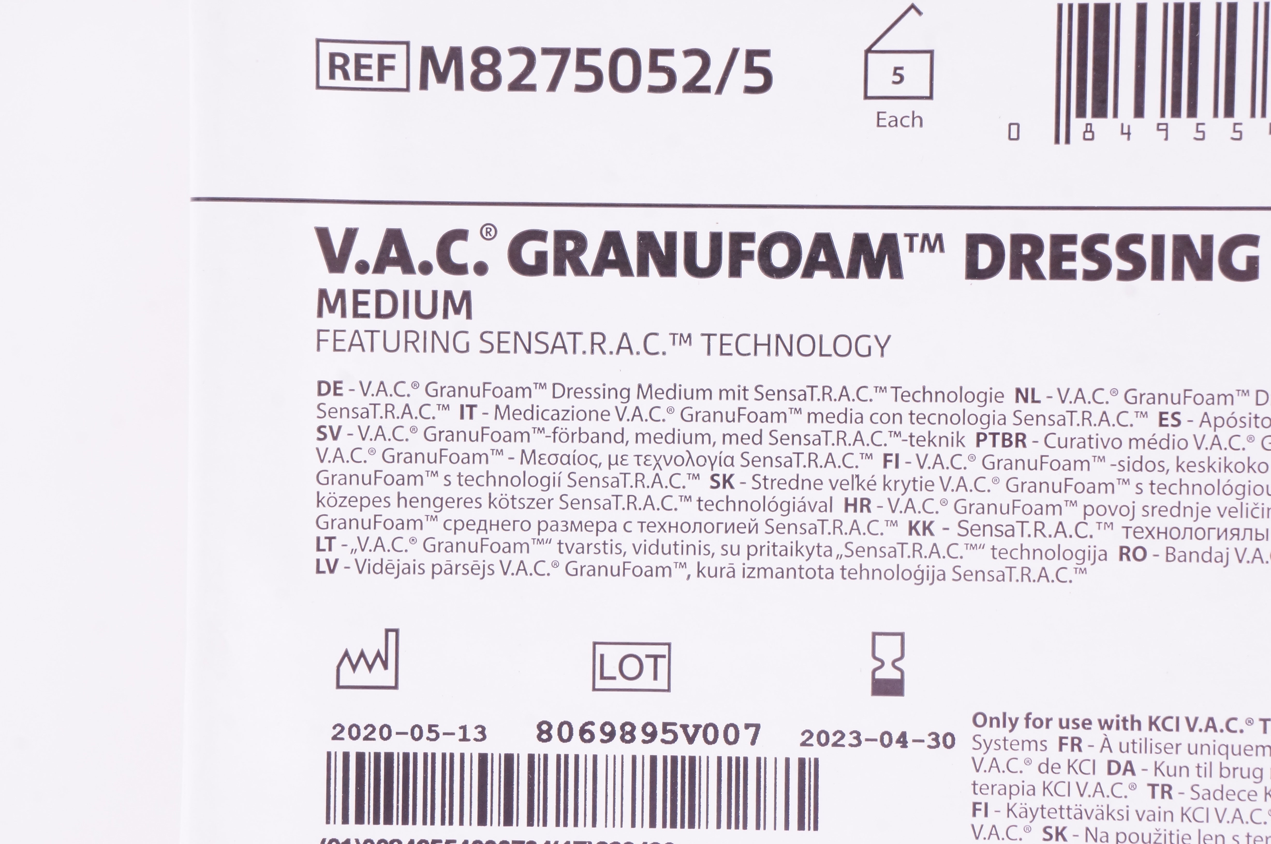 KCI M8275052/5 V.A.C. Granufoam Dressing Featuring SENSATRAC Technology