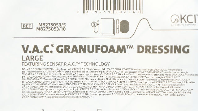 KCI M8275053/5 V.A.C.Granufoam Dressing Large Featuring SENSAT.R.A.C. Technology