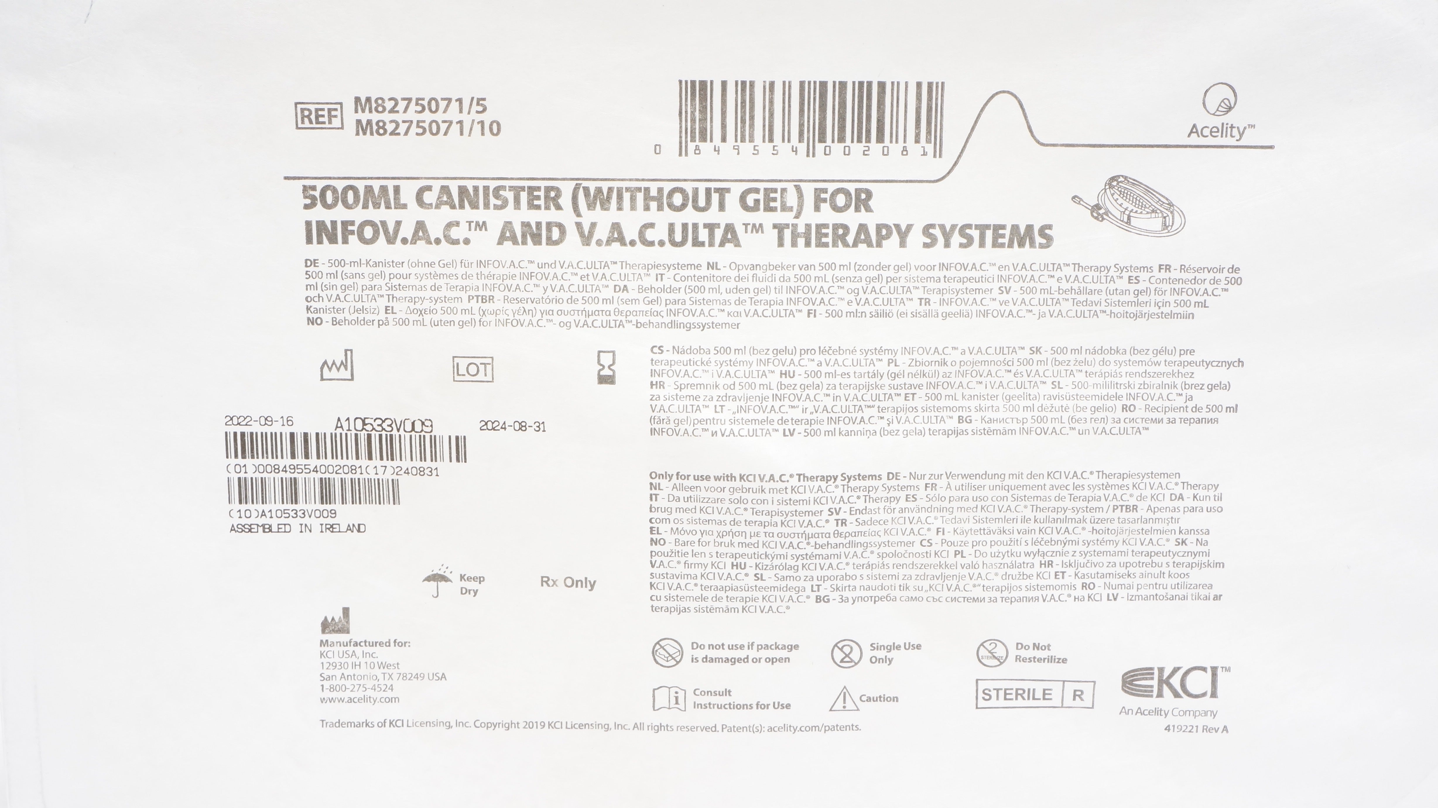 - KCI M8275071/5, 500mL Canister For INFOV.A.C. And V.A.C.ULTA Therapy Systems (x)