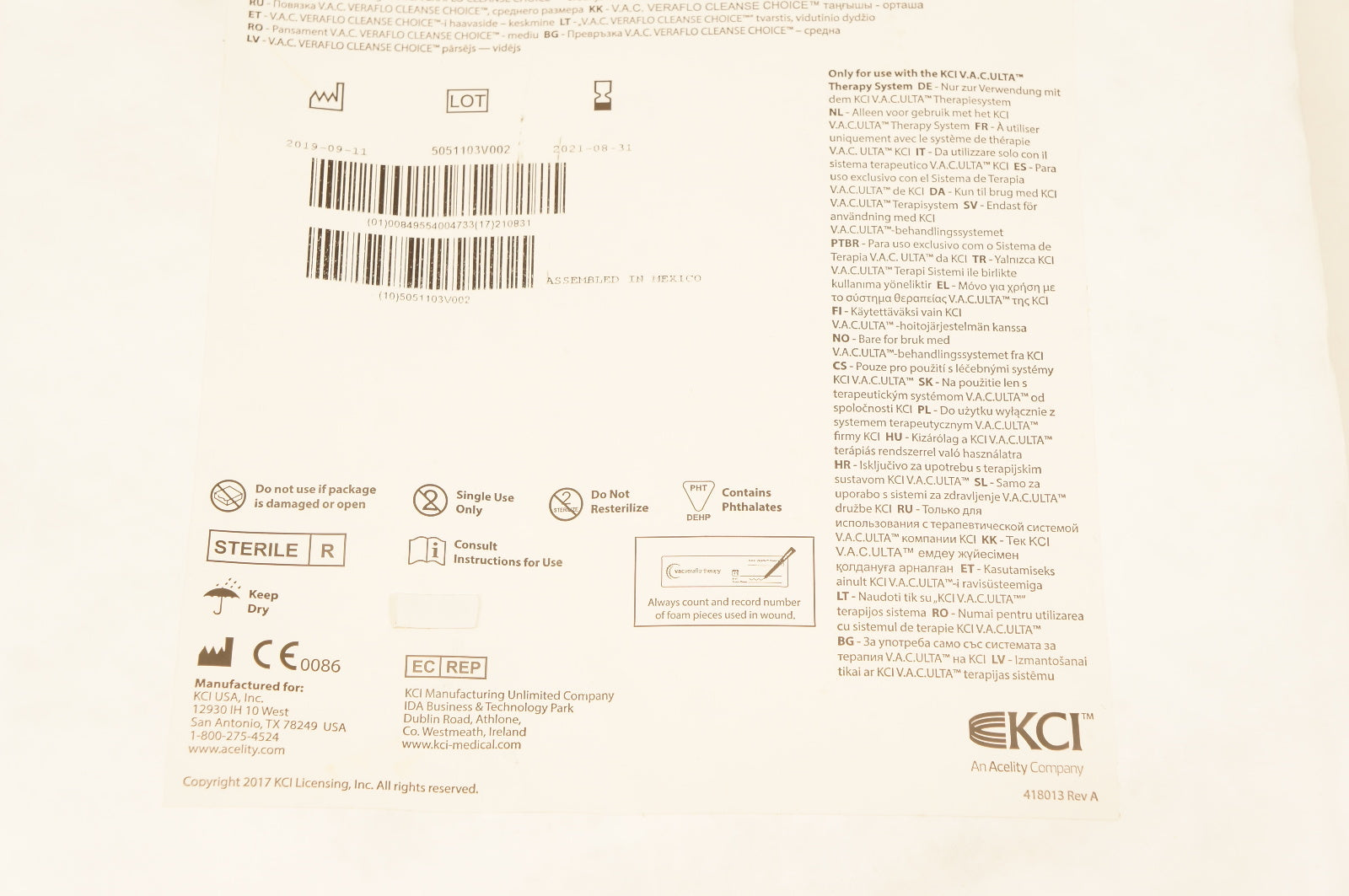 - KCI ULTVCC05MD V.A.C. Veraflo Cleanse Choice Dressing - Medium