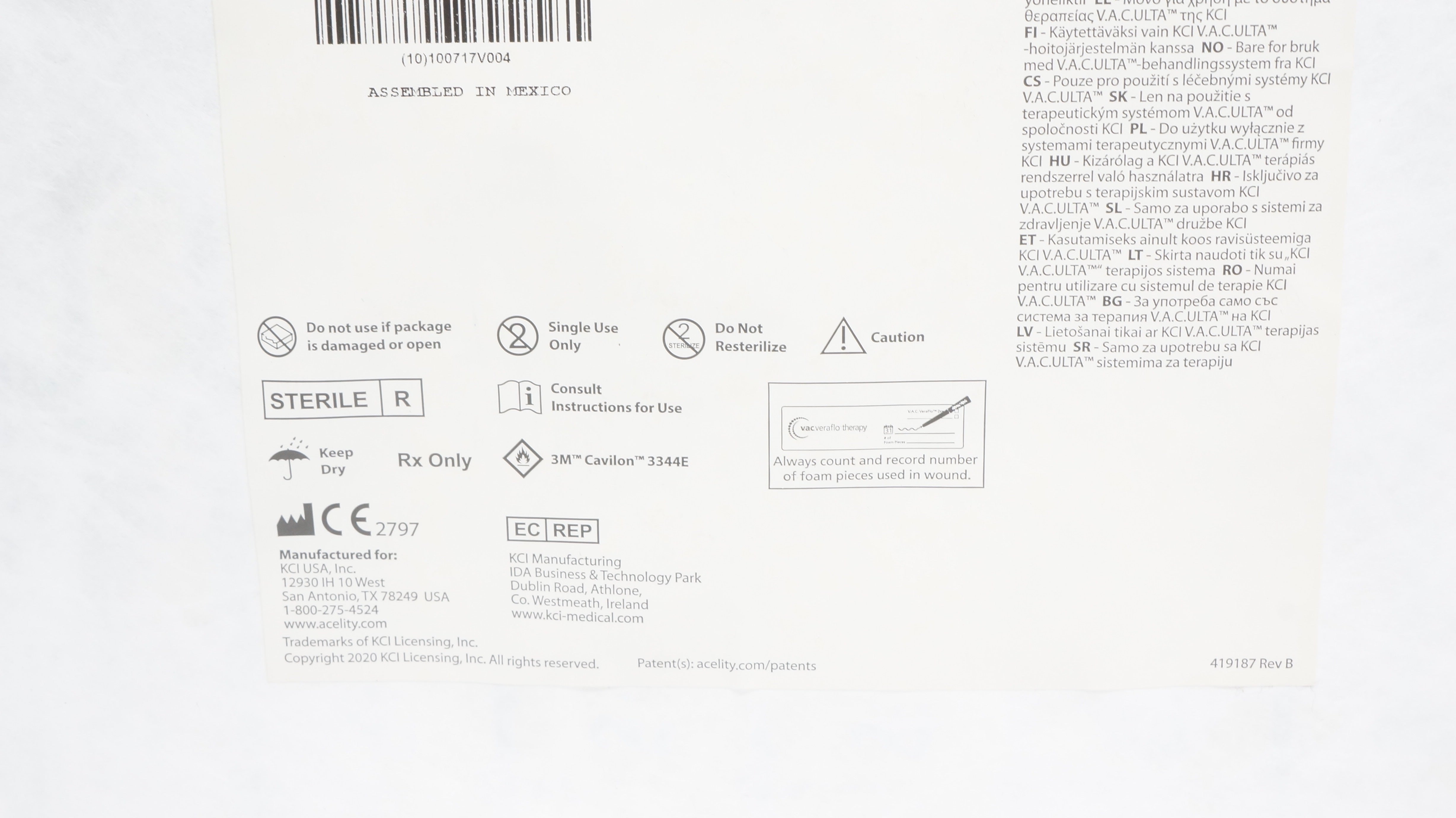 KCI ULTVFL05LG V.A.C. Veraflo Dressing System, Large (x)