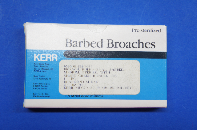 - Kerr Barbed Broach Pulp Canal Medium, Short Green Handle ~ Pack of 30