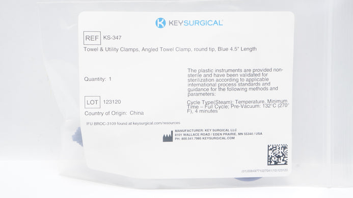 - KeySurgical KS-347 Towel & Utility Clamps, Angled Towel Clamp Round Tip 4.5inch