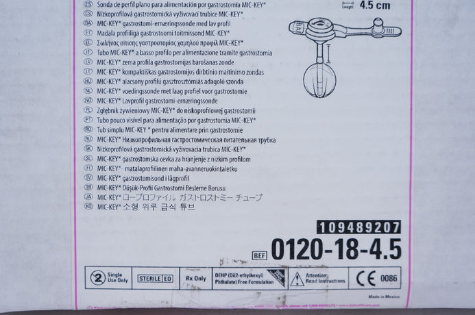 - Kimberly-Clark 0120-18-4.5 MIC-KEY Low-Profile Gastrostomy Feeding Tube 18Fr. (x)