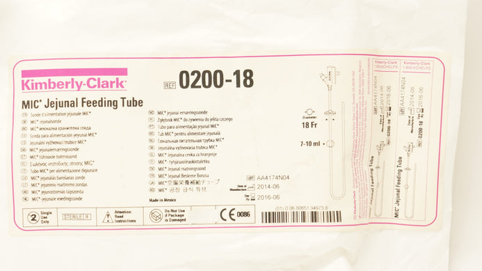 Kimberly-Clark 0200-18 MIC Jejunal Feeding Tube 18Fr x 7-10ml