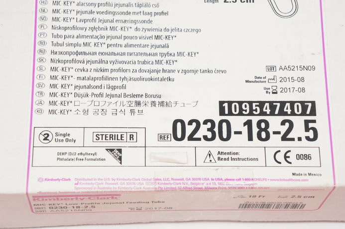 - Kimberly-Clark 0230-18-2.5 MIC-KEY Jejunal Feeding Tube 18Fr. x 2.5cm (x)