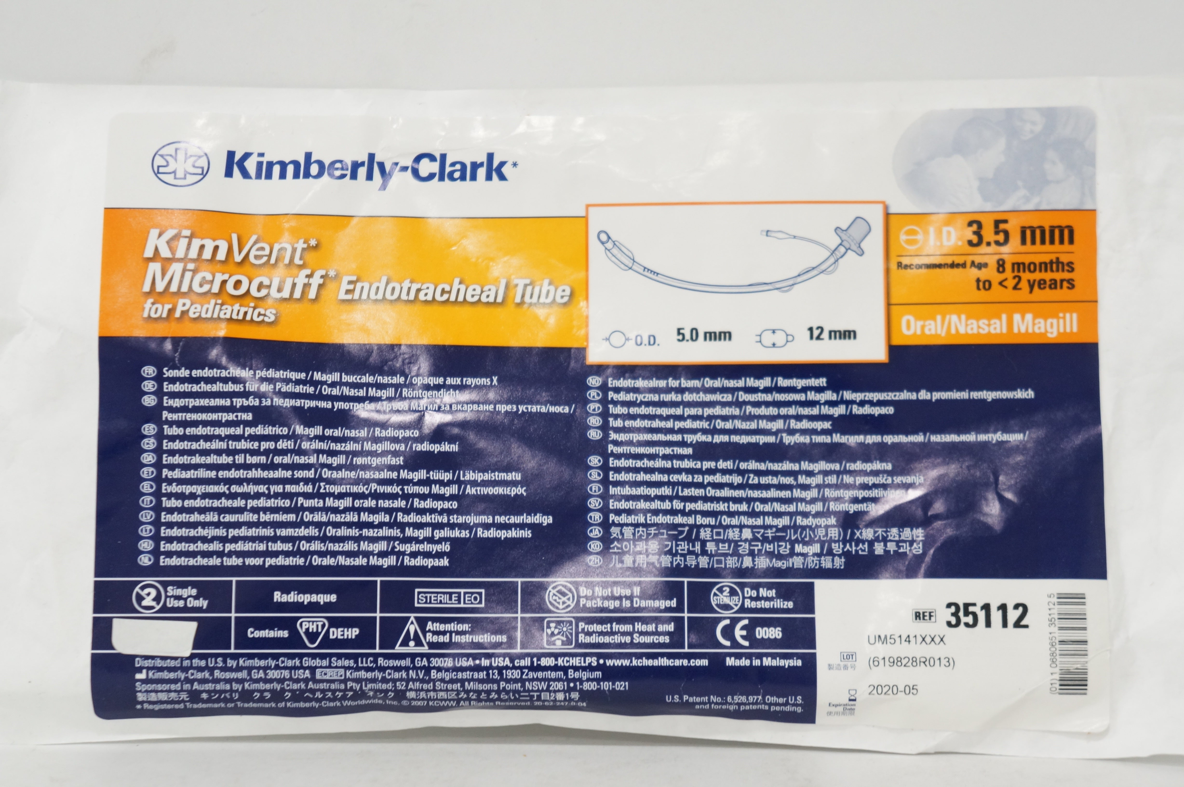 Kimberly-Clark 35112 Microcuff Endotracheal Tube for Pediatrics 5.0 x 12 x 3.5mm (x)