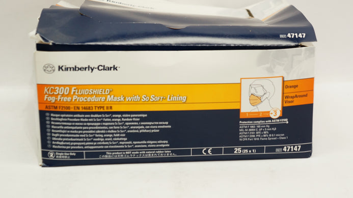 - Kimberly-Clark 47147 Fog-Free Procedure Mask 3 W/SO Soft Lining Orange-Box of 25