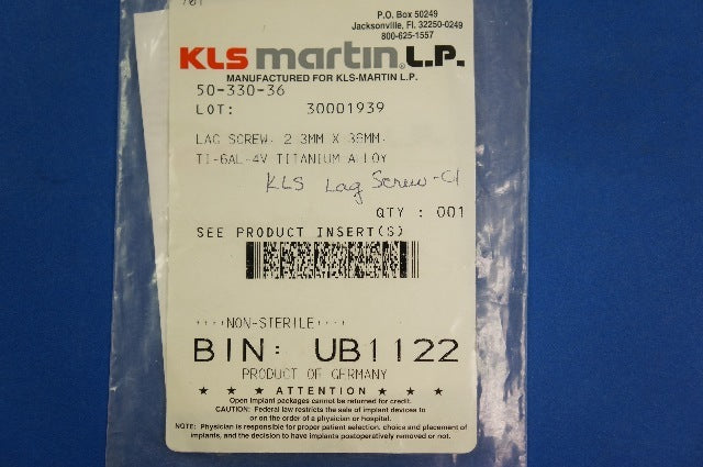 - KLSMartin 50-330-36 Lag Screw 2.3mm x 36mm TI-6AL-4V Titanium Alloy