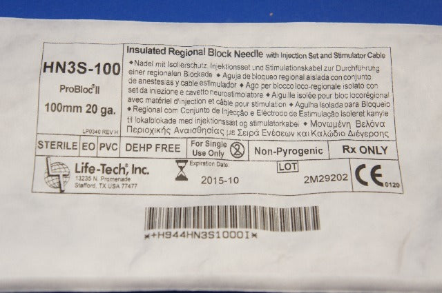 - Life-Tech HN3S-100 Insulated Regional Block Ndle 100mm 20Ga (x)