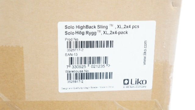 - Liko 3525917-2 Solo HighBack Sling X-Large - Case of 8