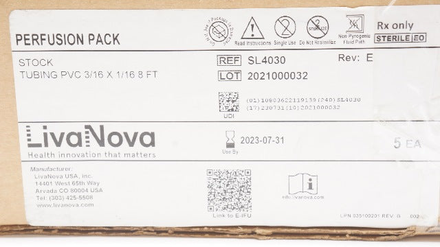 - LivaNova SL4030 Perfusion Pack Tubing PVC 3/16 x 1/16 8ft. - Case of 5