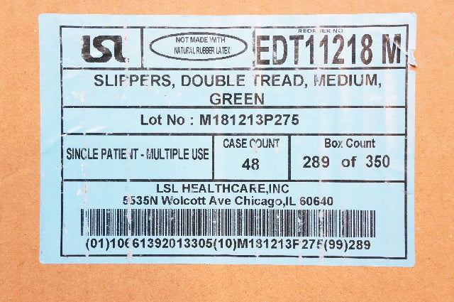 - LSL EDT11218M Slippers Double Tread, Medium Green - Case of 48