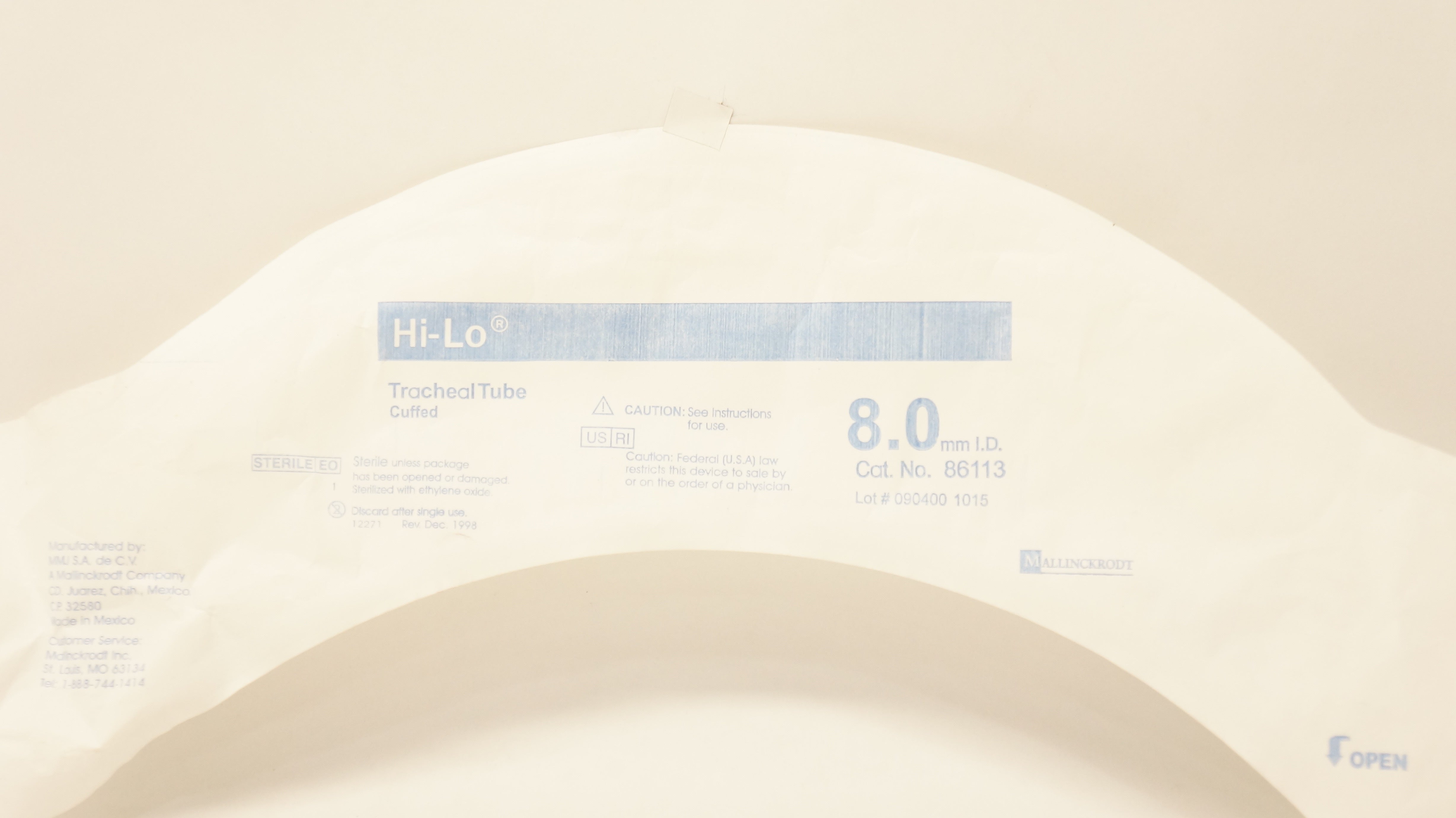 - Mallinckrodt 86113 Hi-Lo Tracheal Tube Cuffed 8.0mm I.D. (x)
