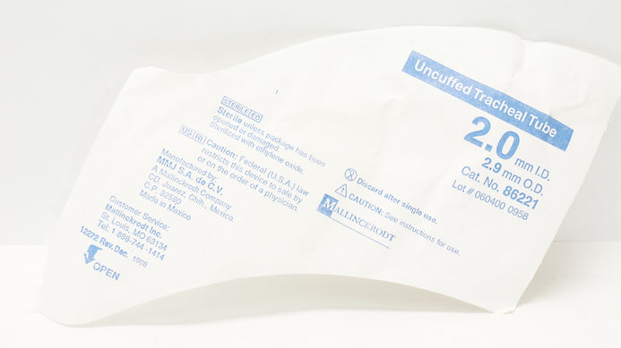 Mallinckrodt 86221 Uncuffed tracheal Tube 2.0mm I.D. x 2.9mm O.D.
