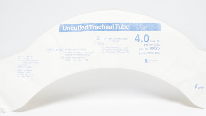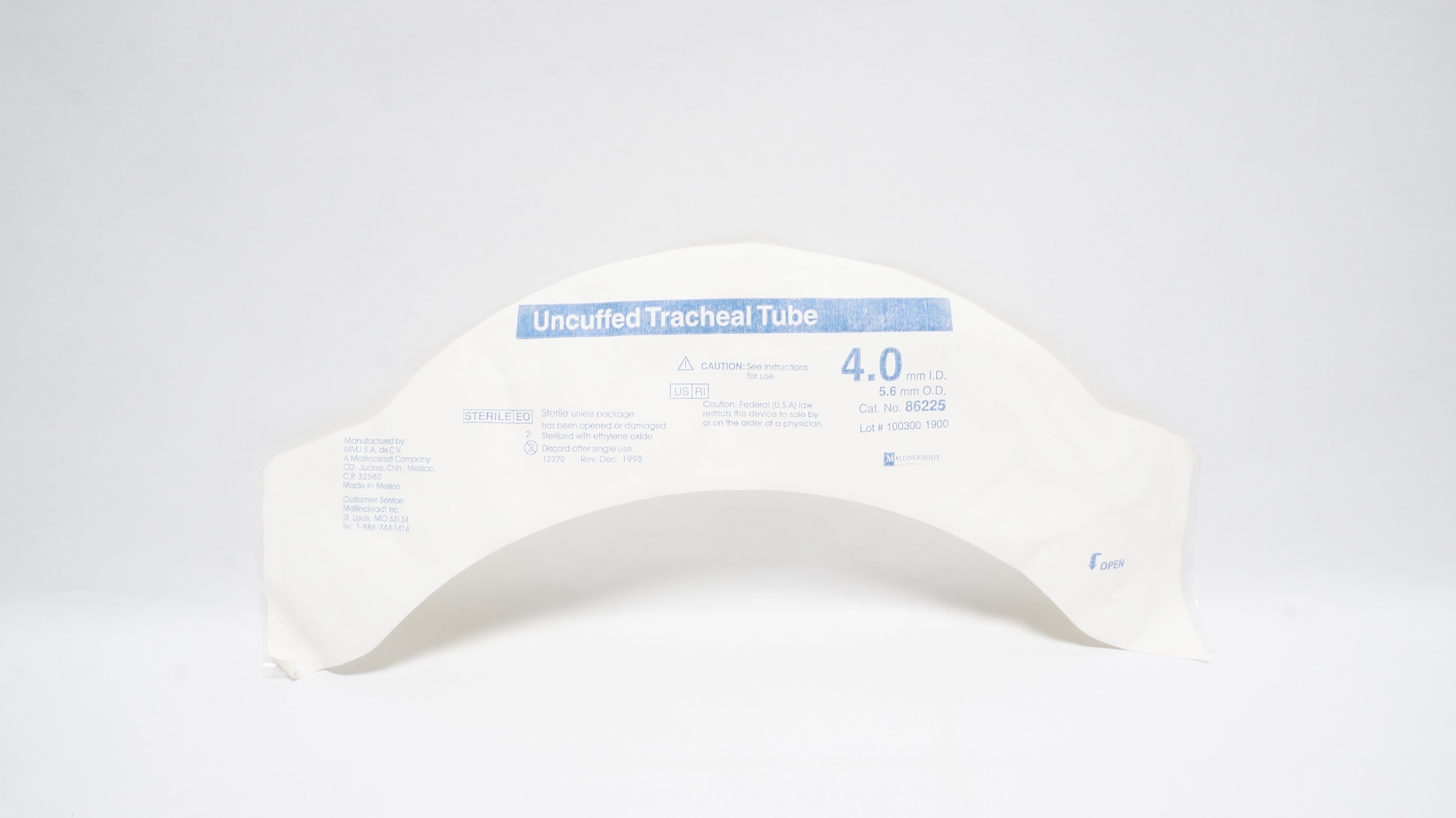 - Mallinckrodt 86225 Uncuffed Tracheal Tube 4.0mm I.D. x 5.6mm O.D.