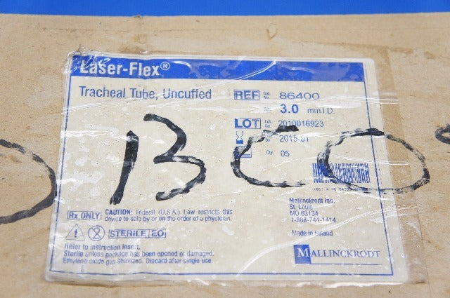 Mallinckrodt 86400 Laser-Flex Tracheal Tube, Uncuffed 3.0mm ID (x) ~ Box of 5