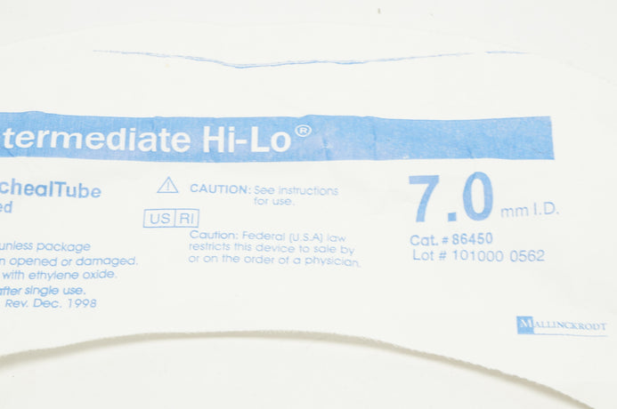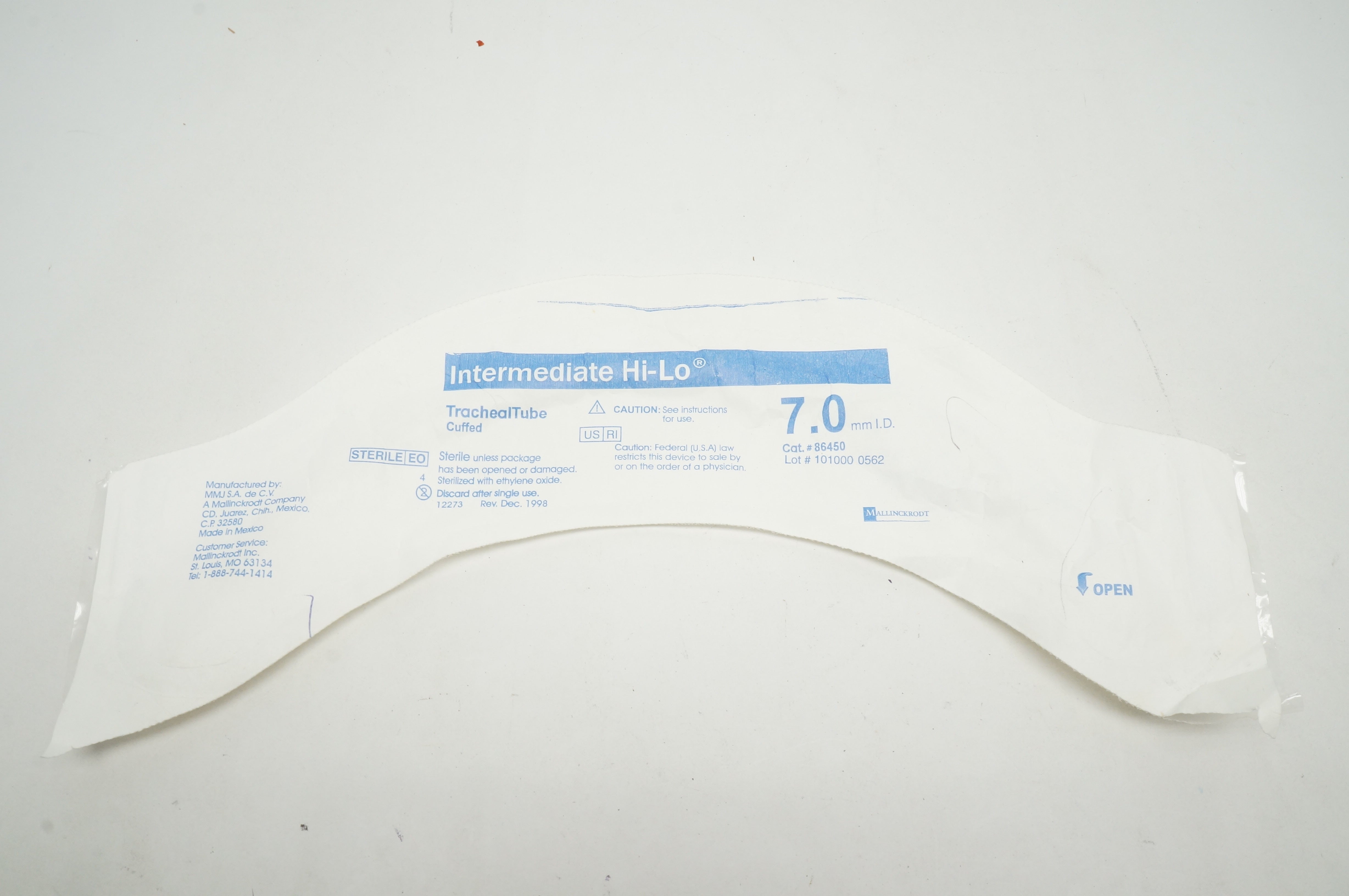 - Mallinckrodt 86450 Intermediate Hi-Lo Tracheal Tube Cuffed 7.0mm I.D.