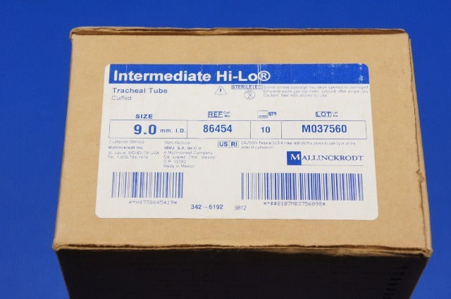 Mallinckrodt 86454 Intermediate Hi-Lo Tracheal Tube Cuffed 9.0mm ~ Box of 10