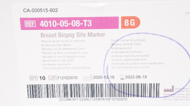 Mammotome 4010-05-08-T3 Breast Biopsy Site Marker 8G