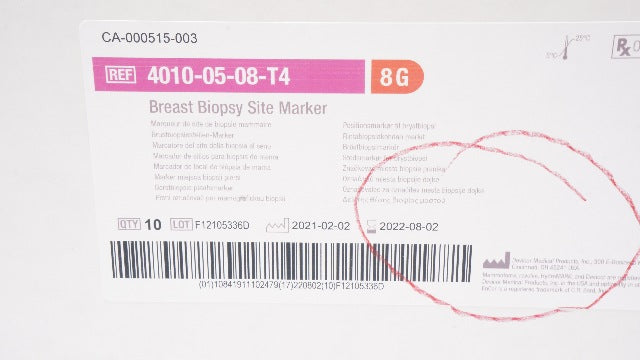 Mammotome 4010-05-08-T4 Breast Biopsy Site Marker 8G - Box of 10 (x)