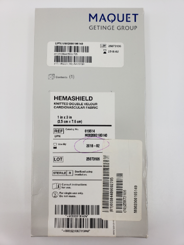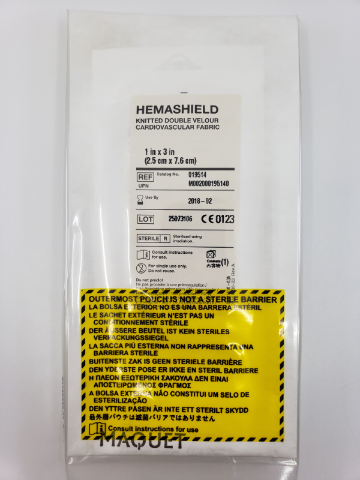 - Maquet 019514 Hemashield Knitted Double Velour Cardiovascular 1in. x 3in. (x)