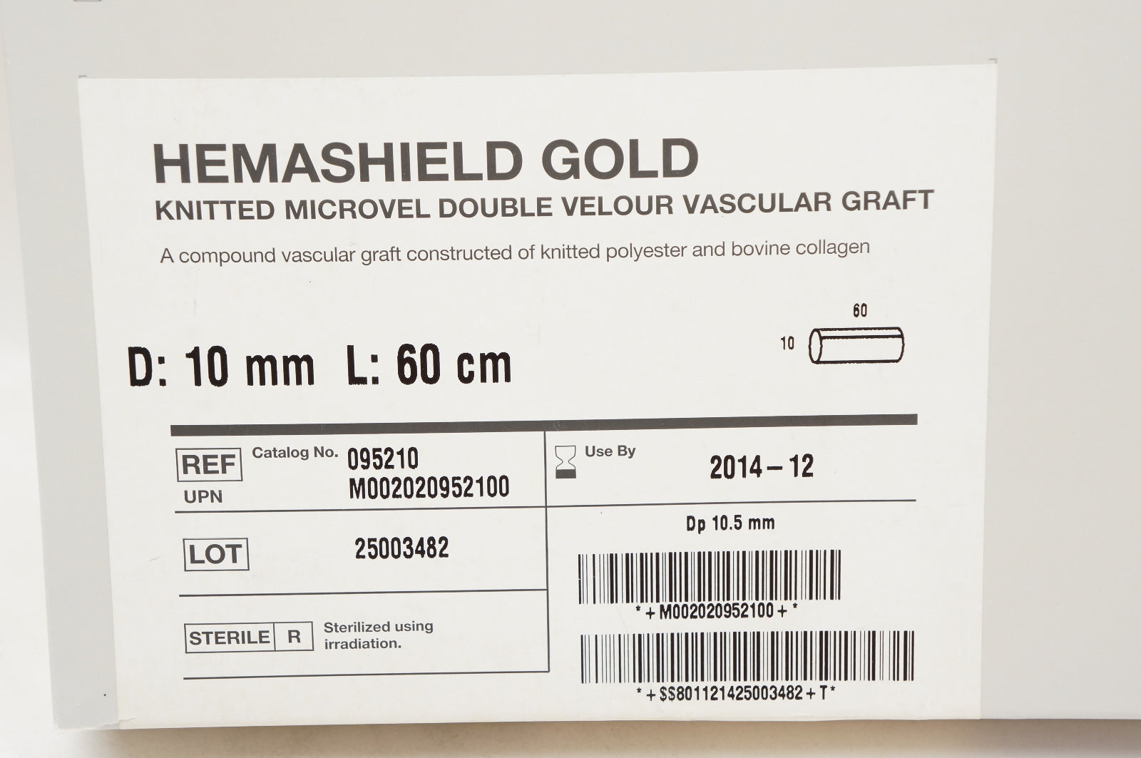 - Maquet 095210 HEMASHIELD GOLD Knitted Microvel Double Velour 10mm x 60cm (x)