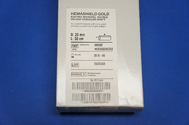Maquet 095220 Hemashield Gold Knitted Microvel Double Velour Vascular Graft 20mm