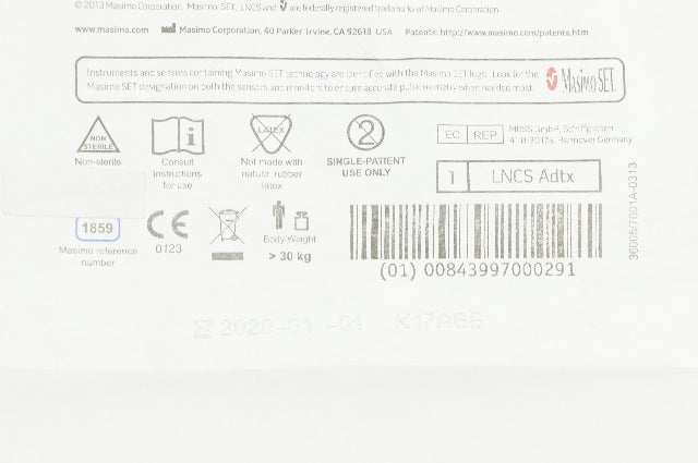 Masimo 1859 LNCS Adtx SpO2 Adult Pulse Oximeter Adhesive Sensor >30 kg (x)