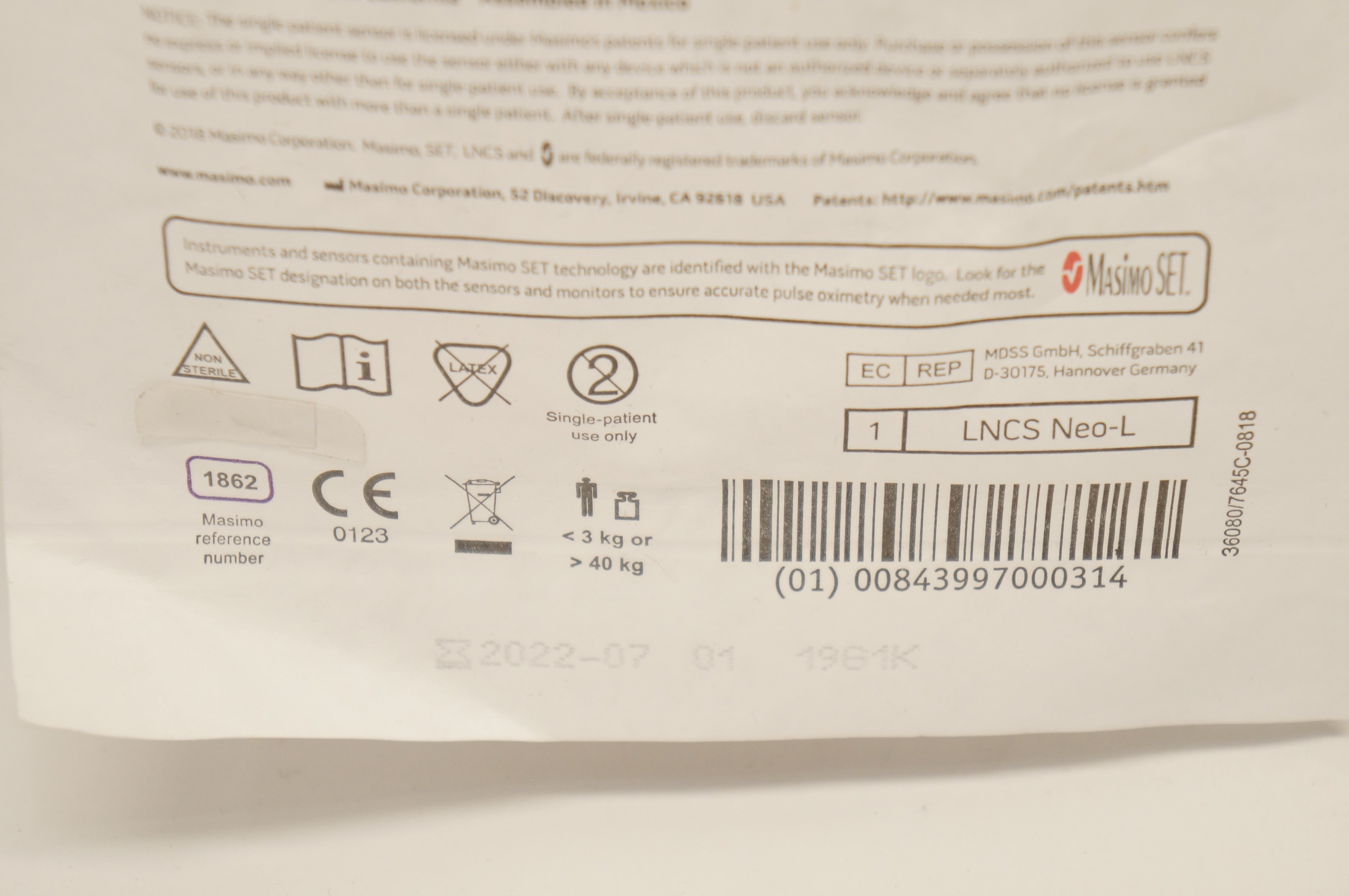 - Masimo 1862 LNCS Neo-L SpO₂ Neonatal/Adult Pulse Oximeter Adhesive Sensor