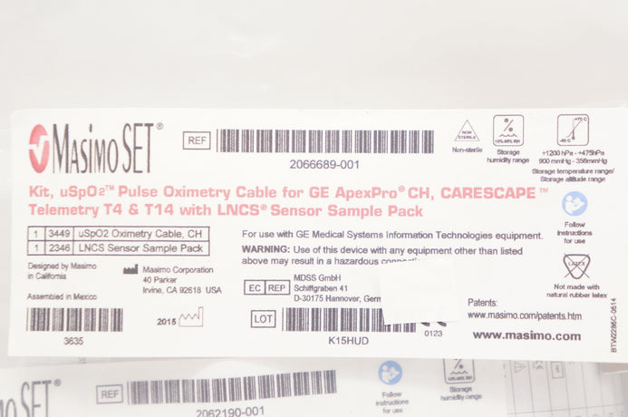 - Masimo 2062190-001 uSpO2 Pulse Oximentry Cable (x)