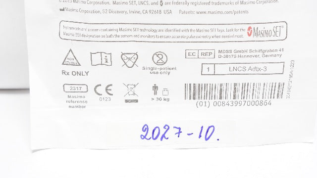 - Masimo 2317 LNCS Adtx-3 SpO2 Adult Pulse Oximeter Adhesive Sensor >30 kg