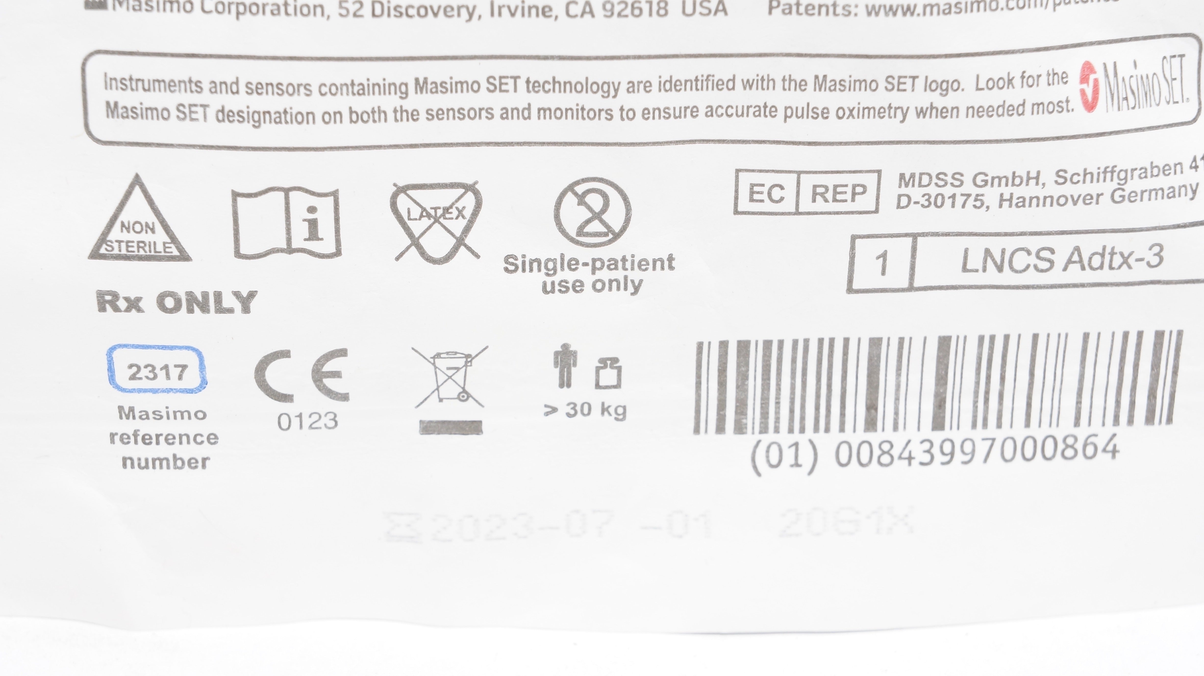 Masimo 2317 LNCS Adtx-3 SpO2 Adult Pulse Oximeter Adhesive Sensor >30 kg (x)