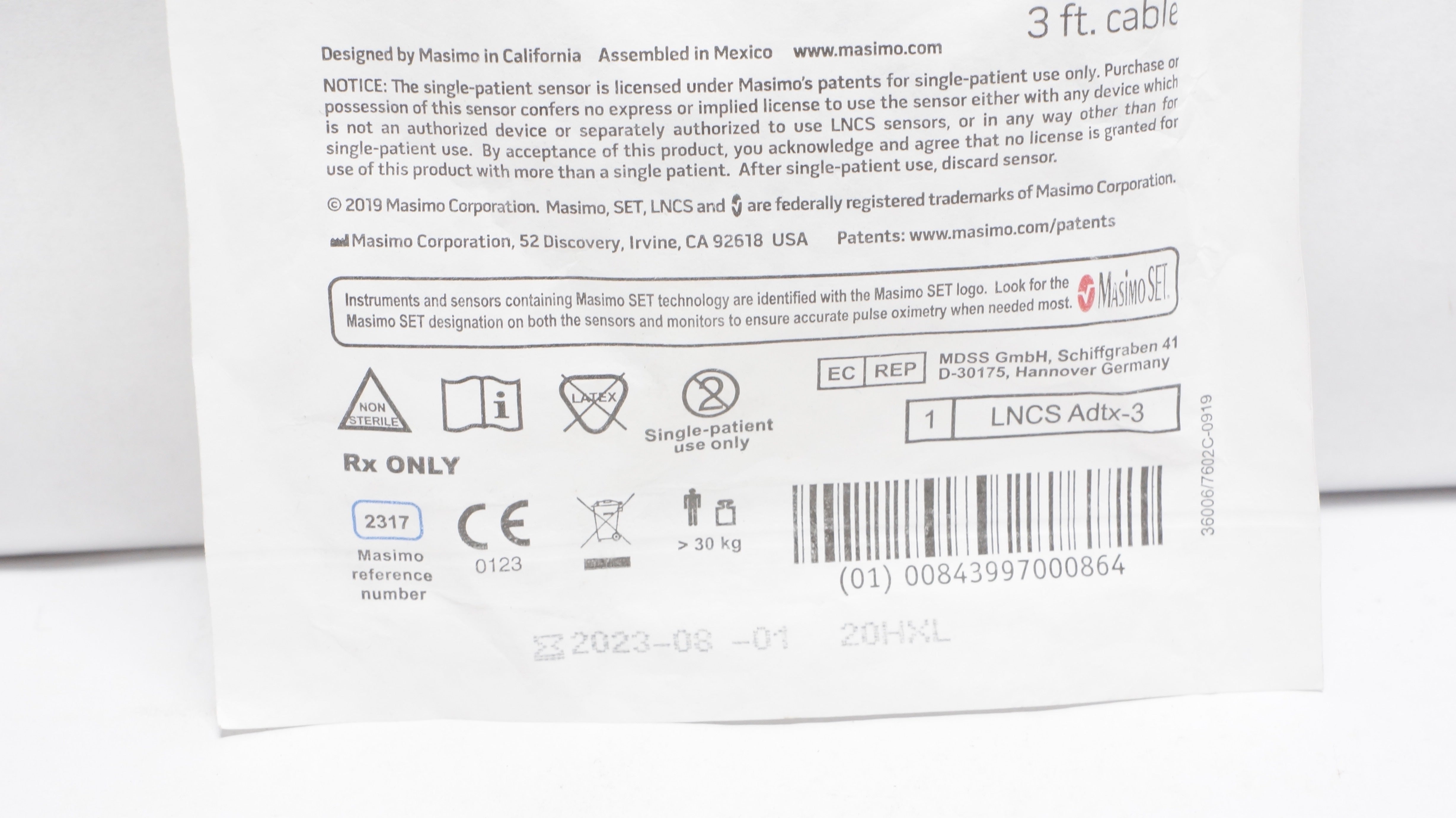 - Masimo 2317 LNCS Adtx-3 SpO2 Adult Pulse Oximeter Adhesive Sensor (x)