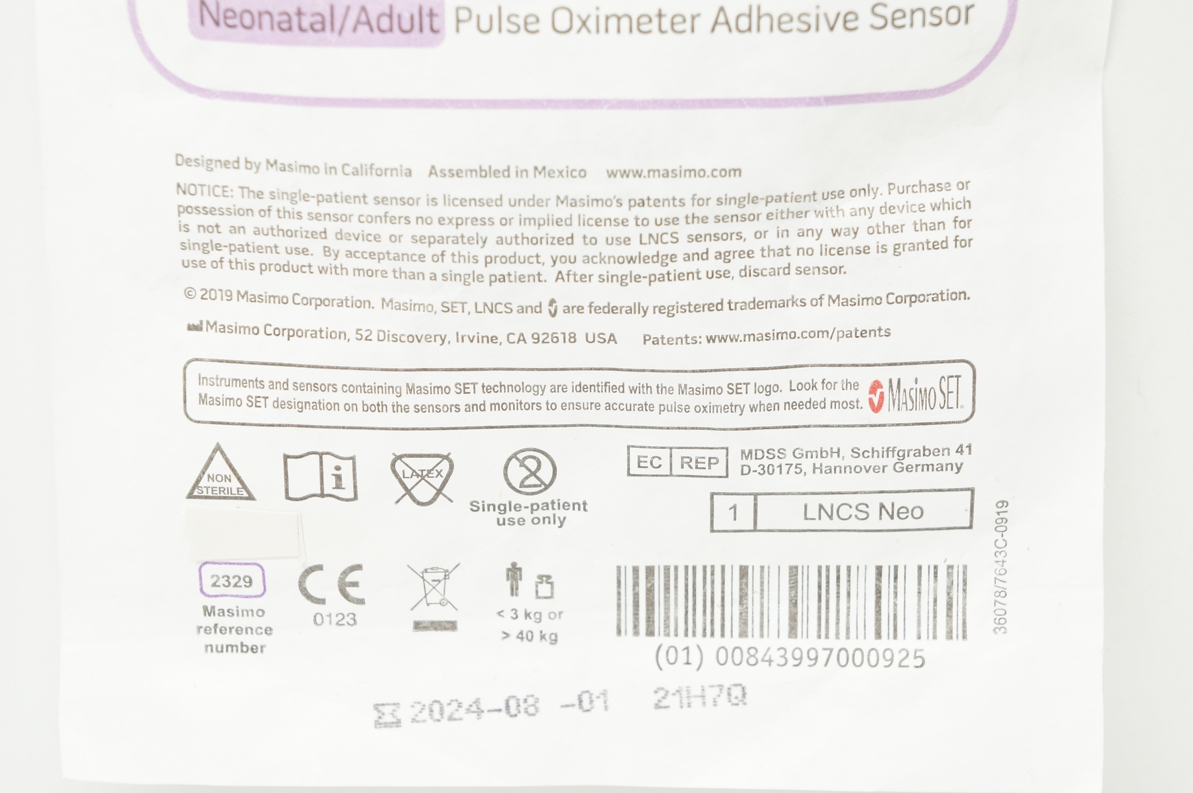 Masimo 2329 Neonatal/Adult Pulse Oximeter Adhesive Sensor <3kg or >40kg
